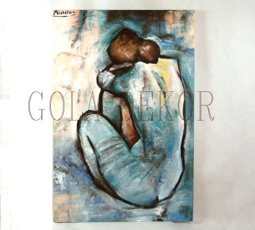 Obraz z NIEBIESKIEGO OKRESU Pabla Picassa, po samobójstwie bliskiego przyjaciela w paryskiej kawiarni, dla niespełnionej miłości.