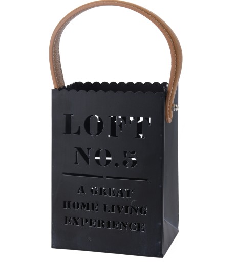 МЕТАЛЛИЧЕСКИЙ ФОНАРЬ, ЧЕРНЫЙ ПОДСВЕЧНИК LOFT, КОЖАНАЯ РУЧКА