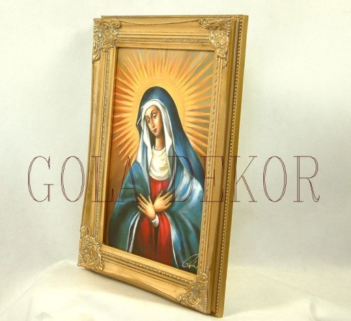 Kopia namalowana na płótnie farbami olejnymi, naciągniętym na blejtram, oprawiony w stylową, złotą ramę.
