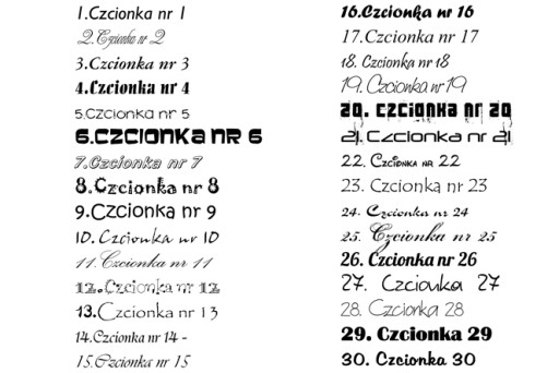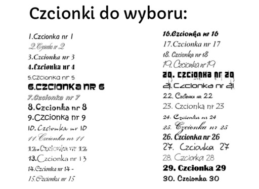 - wpisz jeden z numerów czcionek, którą będzie napisany