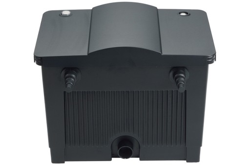 Wydajny filtr przepływowy do stawów ogrodowych i rybnych. Połączenie gąbki filtracyjnej o różnej gradacji daje najlepszą wydajność filtra: różne gąbki filtracyjne zapewniają optymalną filtrację mechaniczną i biologiczną. Do czyszczenia filtr przepływowy posiada dźwignie do wyciskania brudu z gąbek filtra, a także dolny odpływ i przyłącze do czyszczenia.