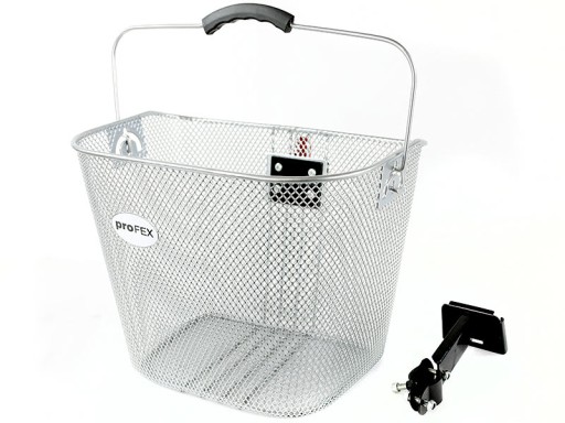 - Markowy srebrny przedni koszyk rowerowy - Ładowność 5 kg