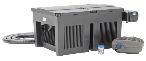 Wydajny filtr przepływowy do stawów ogrodowych i rybnych. Połączenie pianki filtracyjnej i zintegrowanego osadnika UVC zapewnia najlepszą wydajność filtra: różne gąbki filtracyjne zapewniają optymalną filtrację mechaniczną i biologiczną. Do czyszczenia filtr przepływowy posiada dolny odpływ i przyłącze do płukania.
