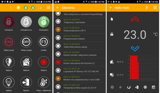 Za pomocą bezpłatnej aplikacji RopamNeo możliwe jest zdalne sterowanie systemem poprzez smartphone wyposażony w system operacyjny Android lub IOS. Dzięki temu nie tylko będziesz mieć możliwość załączania i wyłączania systemu, ale także sterowania urządzeniami podłączonymi do wejść programowalnych płyty głównej, np. światłem, klimatyzacją, roletami, zraszaczami w ogrodzie czy też bramą wjazdową. Zaimplementowane w centrali funkcje logiczne pozwalają na tworzenie indywidualnych poleceń związanych z automatyką domową. Na przykład jeżeli czujnik temperatury wykryje dużą temperaturę możliwe jest automatyczne włączenie podlewania kwiatów, niezależnie od wcześniej zdefiniowanych harmonogramów.