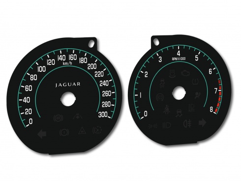Tarcze do licznika Jaguar XF Mk1 (zamiennik z MPH na km) od firmy MoMan