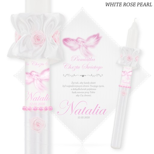 ŚWIECA I SZATKA DO CHRZTU IMIĘ MODLITWA + pudełko + okapnik