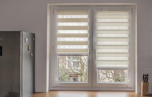 ROLETA A19 MINI DZIEŃ / NOC Z PROWADNICĄ ŻYŁKOWĄ- montaż bezinwazyjny (bez wiercenia), gotowa do zawieszenia na oknie.