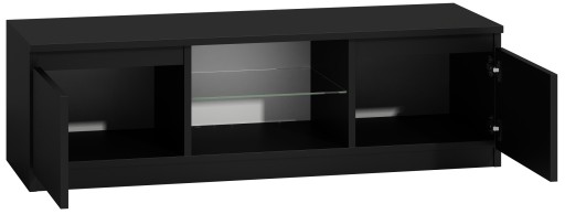 СТОЛ, ШКАФ ДЛЯ ТЕЛЕВИЗОРА, 140 СМ, ЧЕРНЫЙ ГЛЯНЦЕВЫЙ, СВЕТОДИОДНОЕ СТЕКЛО
