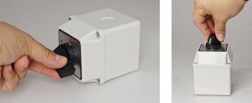 Łączniki krzywkowe w obudowie umożliwiają sterowanie przepływem prądu w kilku obwodach.