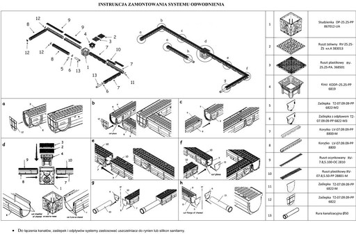 System odwodnienia liniowego jest zaprojektowany w celu zainstalowania nieskomplikowanego, ale funkcjonalnego odwodnienia liniowego i odpływu punktowego wody. Odwodnienia liniowe stosuje się w celu usuwania nadmiaru wody deszczowej stosuje się na podwórzach domowych, ogrodach, podjazdach do garaży, w garażach i innych terenach.