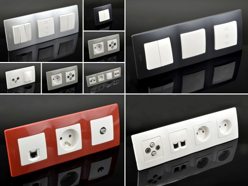 - Szeroka gama gniazd i łączników w tym audio, video i data, które można z łatwością dowolnie konfigurować