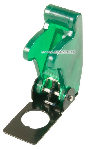 Aby włączyć przełącznik trzeba podnieść klapkę zabezpieczająca, przestawić dźwignie do góry. Wyłączenie odbywa się przez zamkniecie klapki, która cofa dźwignie w dół.