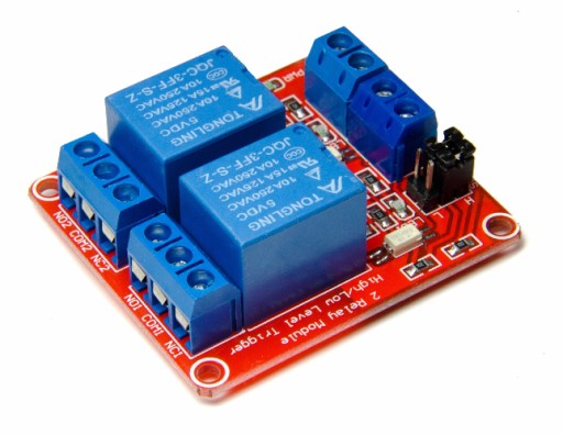 Moduł dwóch przekaźników sterowanych stanem niskim lub wysokim.