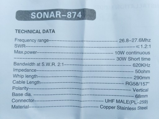 КОРОТКАЯ CB-РАДИОАНТЕННА DELTA 874 33см