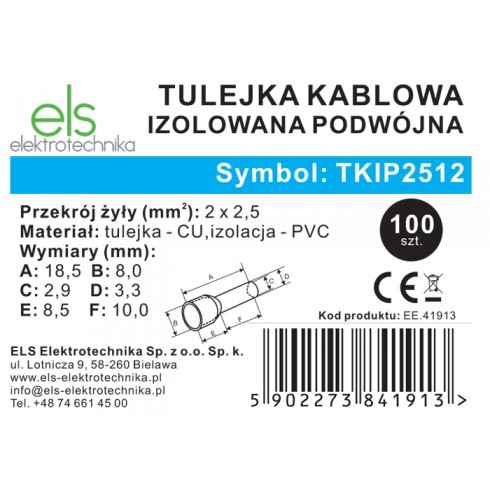 TULEJKA KABLOWA IZOLOWANA PODWÓJNA 2x2,5 mm² 100 SZT.