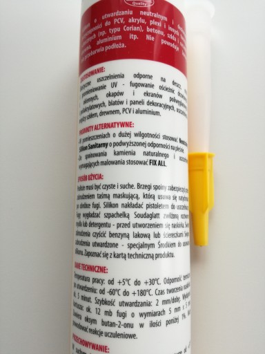 Silikon o utwardzeniu neutralnym i doskonałej przyczepności do PCV, akrylu, plexi i innych tworzyw sztucznych, betonu, szkła i ceramiki, drewna, aluminium