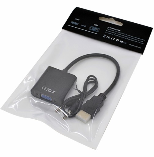 Przedmiotem sprzedaży jest fabrycznie nowy adapter, służący do konwersji sygnału z HDMI do VGA. Adapter przetwarza sygnał cyfrowy na sygnał analogowy. Przejściówka pozwala na podłączenie monitora lub projektora ze złączem VGA D-SUB do dowolnego urządzenia wyposażonego w złącze HDMI np. smartfona, tableta, laptopa, komputera, aparatu cyfrowego, tunera satelitarnego czy konsoli. Konwersja działa tyko w jednym kierunku z HDMI do VGA. Dodatkowo adapter posiada obsługę sygnału analogowego audio w postaci portu mini jack 3,5 mm stereo w tylnej części obudowy złącza VGA (w zestawie kabel jack-jack o długości 50cm).