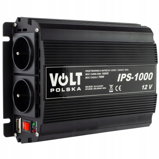 Elektroniczna przetwornica napięcia IPS służąca do zasilania urządzeń elektrycznych wymagających napięcia przemiennego 230V z akumulatorów i instalacji samochodowych o napięciu stałym 12V.