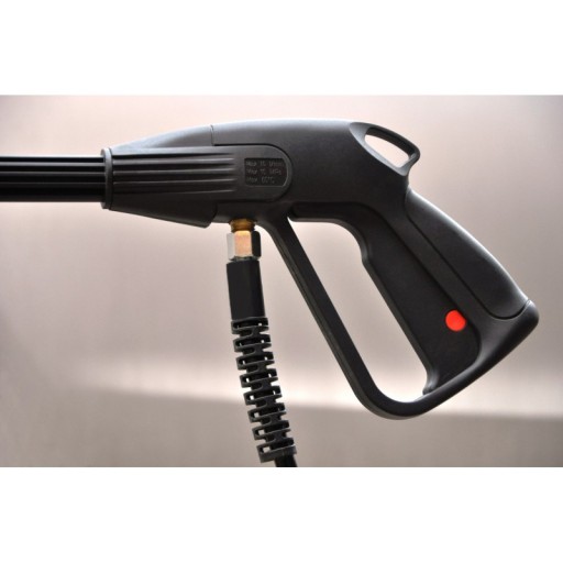 Gwint przyłączeniowy węża M14x1,5 umożliwia podłączenie pistoletu z myjką ciśnieniową za pomocą węży termoplastycznych – dostępnych także na innych naszych aukcjach o długości 5m i 10m.