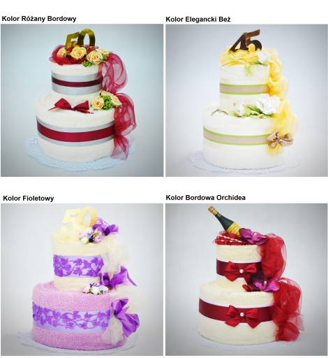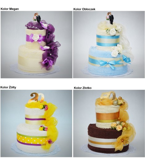 Zapraszamy do zakupu oryginalnego i eleganckiego prezentu jakim jest tort z ręczników. To doskonały prezent na ślub, rocznicę ślubu, urodziny, podziękowania dla rodziców. Doskonały, jako dodatek do "koperty" i prezent zamiast kwiatów. Tort z ręczników jest tak piękny jak bukiet, ale będzie cieszył oko dłużej. To bardzo ładny i równocześnie praktyczny prezent. Po jego rozwinięciu obdarowani będą się cieszyć miękkimi, grubymi i chłonnymi ręcznikami.
