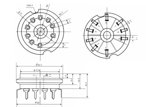КЕРАМИЧЕСКАЯ РОЗЕТКА 9PIN PCB8 NOVAL 12AX7 12AT7