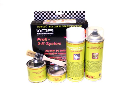 Jest to nasz firmowy produkt (produkowany przez nas) składający się z "brake caliper cleaner" , specjalnego podkładu do lakierów fluorescencyjnych oraz odpornego termicznie 2-składnikowego lakieru z utwardzaczem.