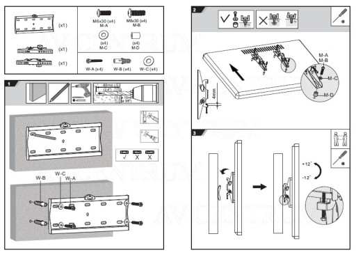 W zestawie komplet śrub do montażu uchwytu do ściany oraz telewizora do uchwytu. Polska instrukcja montażu!