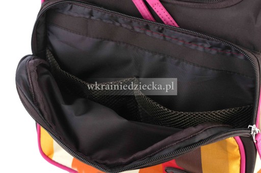 Posiada jedną duża kieszeń zamykaną na zamek.
