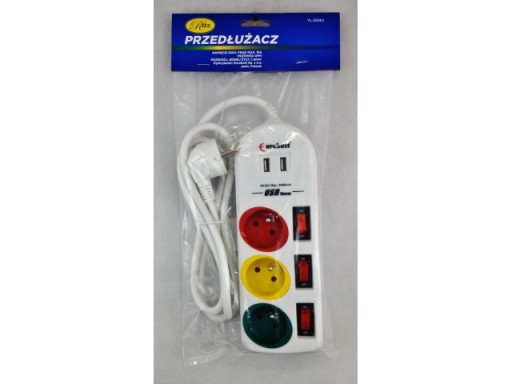 Listwa zasilająca przedłużacz 3 gniazda 3 włączniki + 2xUSB 1,5m kolor