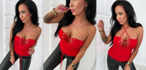 - Bluzka posiada bardzo efektowny wiązany dekolt.