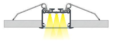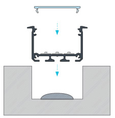 Efekt końcowy montażu profilu INSO wpuszczanego z kloszem WIDE w wyfrezowanym otworze z dodatkiem kleju montażowego