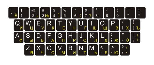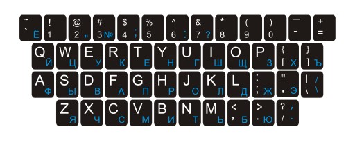 Наклейки для клавиатуры QWERTY+КИРИЛЛИЦА 11х13 мм