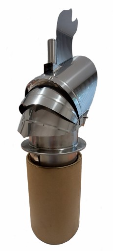 Unikalne rozwiązanie chronione patentem, które polega na wyprowadzanym ponad kołpak szczelnie zamkniętym układzie obrotowym (łożyska toczne), co uniemożliwia bezpośredni kontakt ze spalinami i wysokimi temperaturami