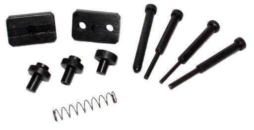Zestaw zawiera wszystkie potrzebne trzpienie do zakuwania i rozkuwania łańcuchów wraz z praską bardzo solidne wykonania.