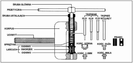 Nadaje się również za zakuwania i rozkuwania łańcuszków rozrządu