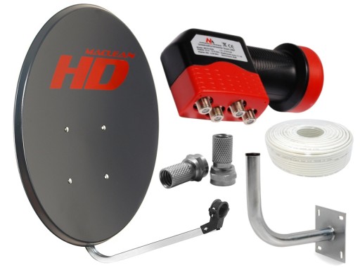 FULL ZESTAW HD: Czasza HD 80cm, Maszt 28cm, Konwerter Quad HD, Kabel antenowy 50m, Wtyki F!