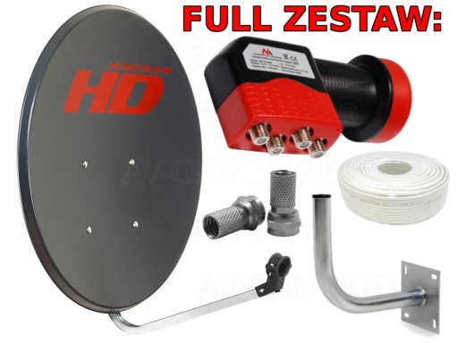 FULL ZESTAW HD: Czasza HD 80cm, Maszt 28cm, Konwerter Single HD, Kabel antenowy 50m, Wtyki F!