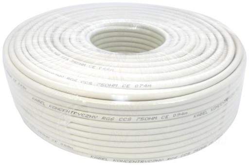 50m - RG6-U CCS Gruby 1,02mm rdzeń kabla z podwójnym ekranowaniem gwarantuje bardzo wysokie parametry elektryczne oraz wyjątkowo niską tłumienność sygnału.