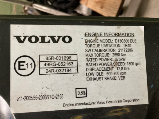 . Mam do sprzedania silnik , do samochodu ciężarowego VOLVO FH13 480 / 500 PS, typ D13C 500 EEV euro 5.