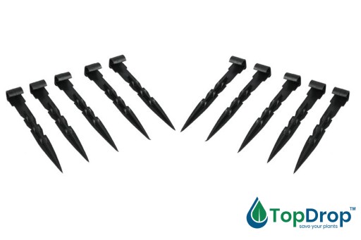 Specjalnie zaprojektowany profil szpilki zapewnia stabilne przytrzymanie przewodów (linii) nawadniających.