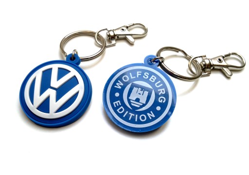 - dwustronny (wypukłe logo - znaczek VW; z tyłu płaski nadruk emblematu Wolfsburg Edition)