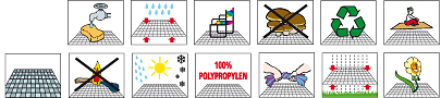 Wykładzina jest także odporna na działanie słońca, wody i nie ulega zapleśnieniu dlatego nadaje się do stałego rozłożenia. Łatwa w rozkładaniu, zapakowana w torbę z uchwytem do przenoszenia.