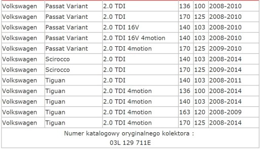 Kolektor jest odpowiedni dla wszystkich samochodów grupy VAG z silnikami 2.0 TDI Common Rail
