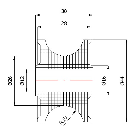 Rolka tworzywowa fi 44mm (poliamid) bez łożysk na linkę: 20mm.
