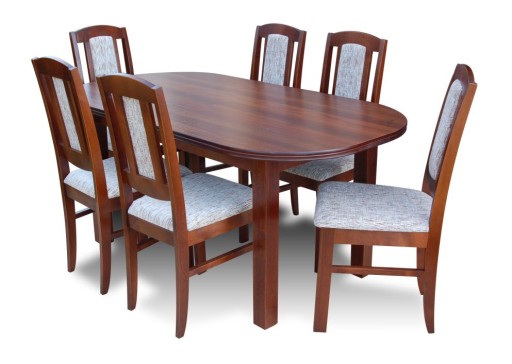 Zestaw nr.1 to idealna propozycja dla osób ceniących prosty wygląd z wysoką jakością wykonania. Komplet obejmuje stół rozkładany 160x90/200 oraz 6 krzeseł tapicerowanych. Blat stołu to płyta MDF melaminowana, nogi proste, wykonane z drewna bukowego. Do wyboru mają Państwo 11 różnorodnych wybarwień drewna oraz 3 najwyższej jakości tkaniny obiciowe do krzeseł. Postaw na nowoczesny wygląd, stworzony idealnie do Twojego pomieszczenia...