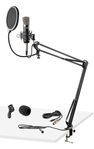 Ten niesamowity zastaw Vonyx Studio Set zawiera wszystko czego oczekujesz od mikrofonu aby zacząć przygodę w nagrywaniu. Mikrofon pojemnościowy z pop-filtrem zapewni użytkownikowi czysty dźwięk przy tworzeniu podcastów, rejestrowaniu wokali, audycji , itp. Statyw stołowy typu ramię ma regulowaną wysokość i kąt nachylenia dzięki czemu w łatwy sposób możemy ustawić mikrofon w najlepiej dopasowanej do własnych predyspozycji pozycji. Sam pop filtr uchroni nagrania przed sybilantami i głoskami wybuchowymi. W zestawie otrzymujemy również koszyk na mikrofon oraz kabel.