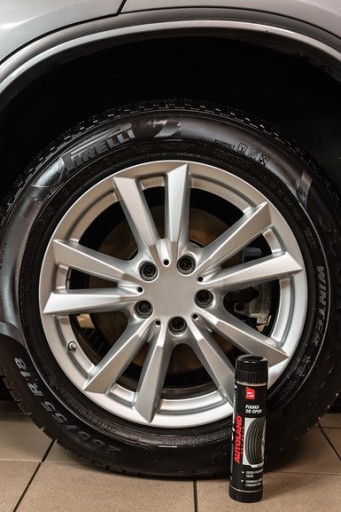 Mocno zabrudzone opony wstępnie przemyj. Mocno potrząśnij pojemnikiem. Rozprowadź środek z odległości ok 15 cm równomiernie na powierzchnię opony i pozostaw do wyschnięcia. W razie potrzeby przetrzyj opony czystą szmatką.