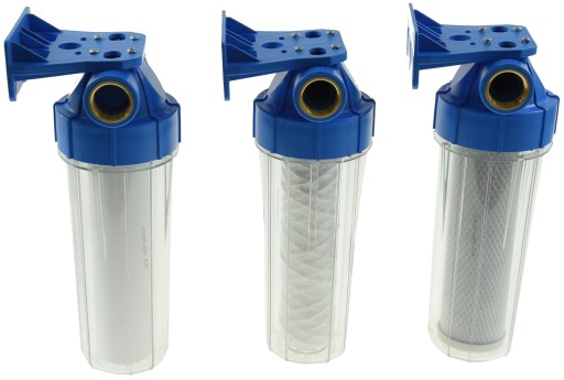 Zestaw filtrów w układzie szeregowym zaczynając od filtra sznurkowego następnie polipropylenowego a kończąc na filtrze węglowym.