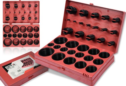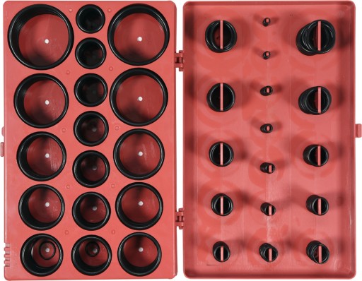 Zestaw 419 sztuk oringow wykonanych z NBR. Zestaw zawiera rozmiary od 3x1.5 mm do 50x3.5 mm. Całość umieszczono w wygodnym opakowaniu typu "sortownik".