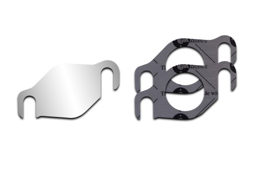 Zaślepki wykonano z wysokiej jakości stali kwasoodpornej 0H18N9 odpornej na warunki panujące w układzie wydechowym. Zaślepki poddane zostały mechaniczne obróbce. Dzięki temu usunięte zostały ostre krawędzie a powierzchnia ujednolicona. Natomiast na uszczelki użyto materiał GAMBIT AF-1000 wykonany na bazie włókien aramidowych, włókien mineralnych oraz wypełniaczy powiązanych lepiszczem na bazie kauczuku NBR oraz zbrojonego ocynkowaną stalową siatką.